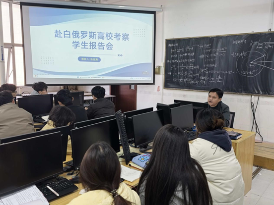为搭建学生国际化发展平台,助力学子拓宽职业赛道,更好的服务学生全面成长,2025年11月18日,qy球友会,千亿球友会在综合实验楼W406教室召开赴白俄罗斯高校考察学生报告会。qy球友会,千亿球友会副院长张运海担任主讲人。