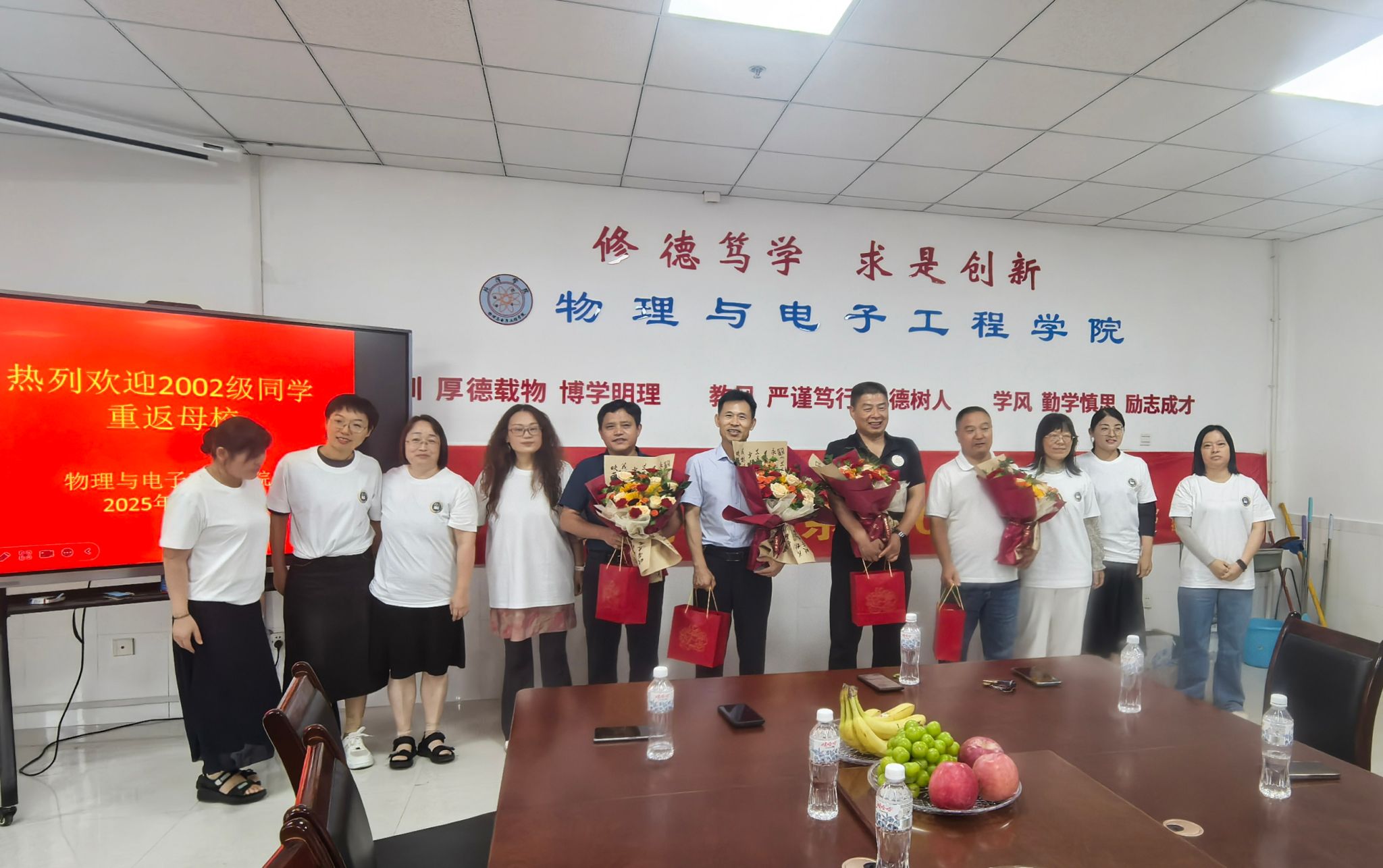 时光荏苒,岁月如歌,8月9日,2002级物理教育班校友们从五湖四海重聚母校。熟悉又陌生的校园,久违的面孔,重逢的喜悦在握手言欢、笑语晏晏中弥漫开来,共同开启一场追溯青春、感念师恩的温暖聚会。