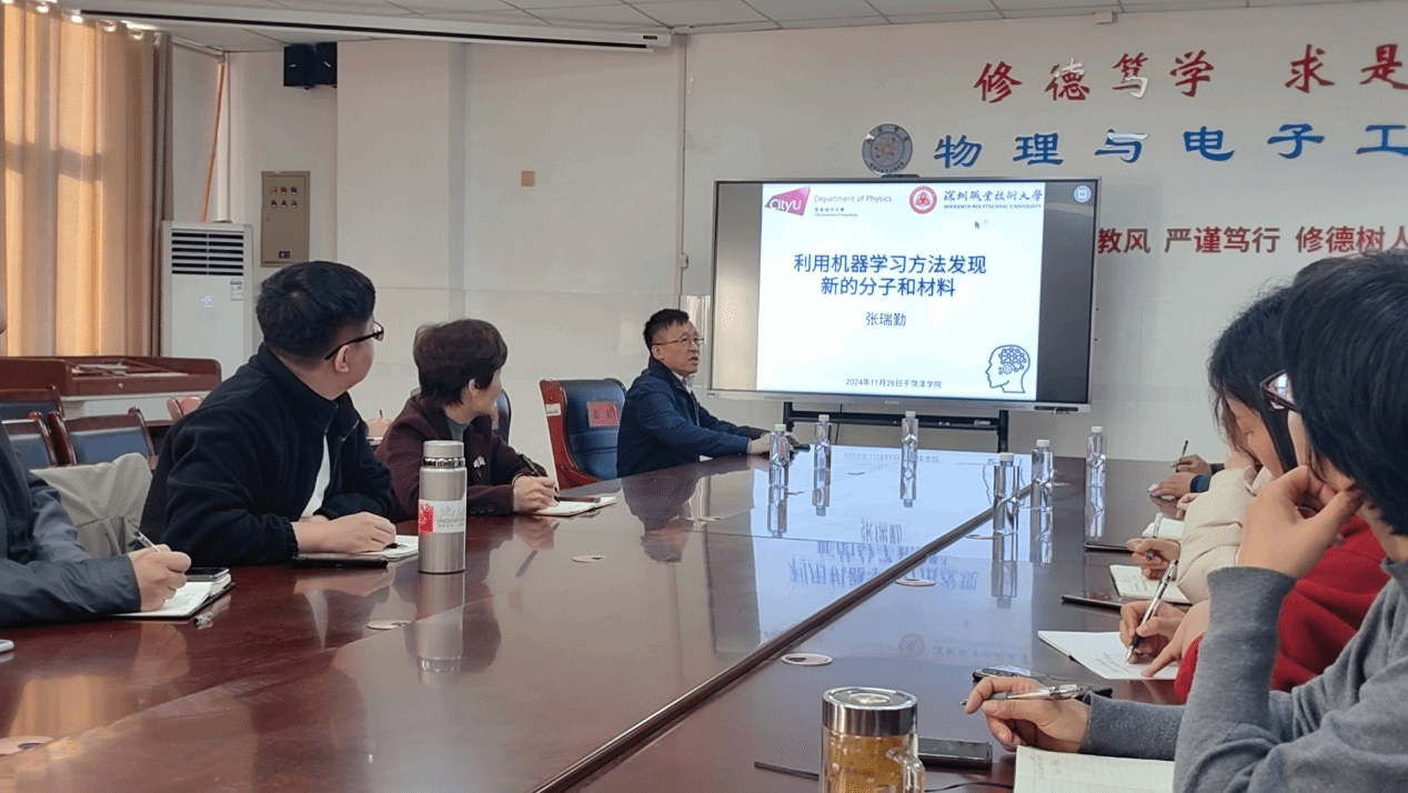 11月26日下午,应qy球友会qy球友会,千亿球友会邀请,香港城市大学理学院博士生导师张瑞勤教授在综合实验楼W207室为全院教师、学生代表做了题为《利用机器学习方法发现新的分子和材料》的专题报告。qy球友会,千亿球友会党委书记徐鹤、副院长张运海教授及全院师生代表共计60余人聆听报告。报告由张运海教授主持。
