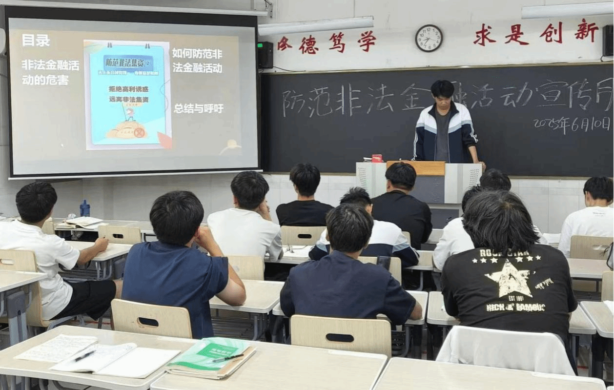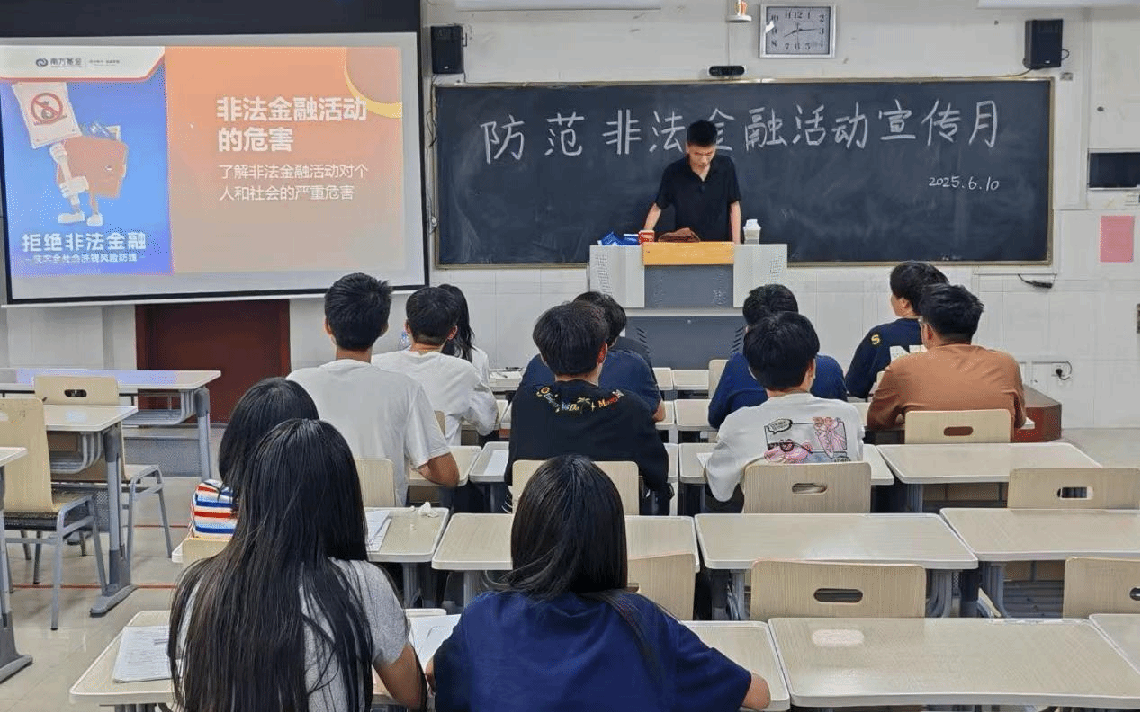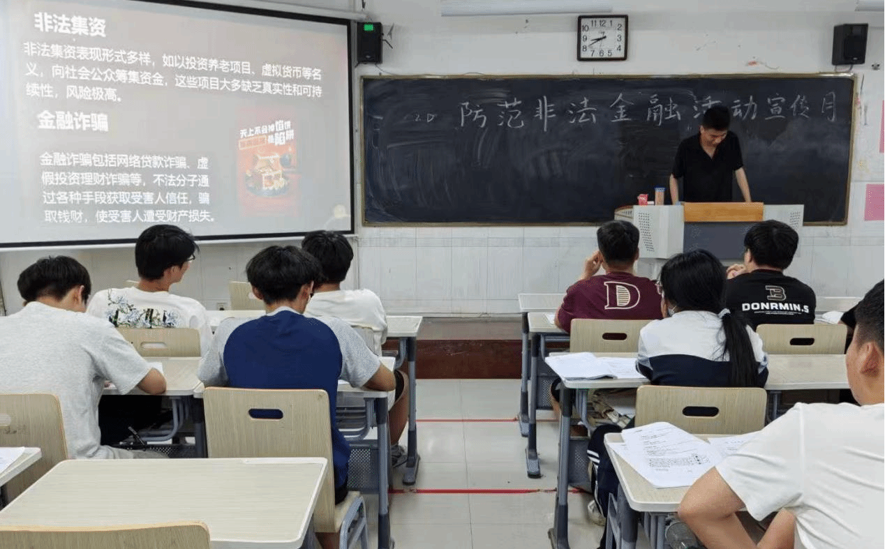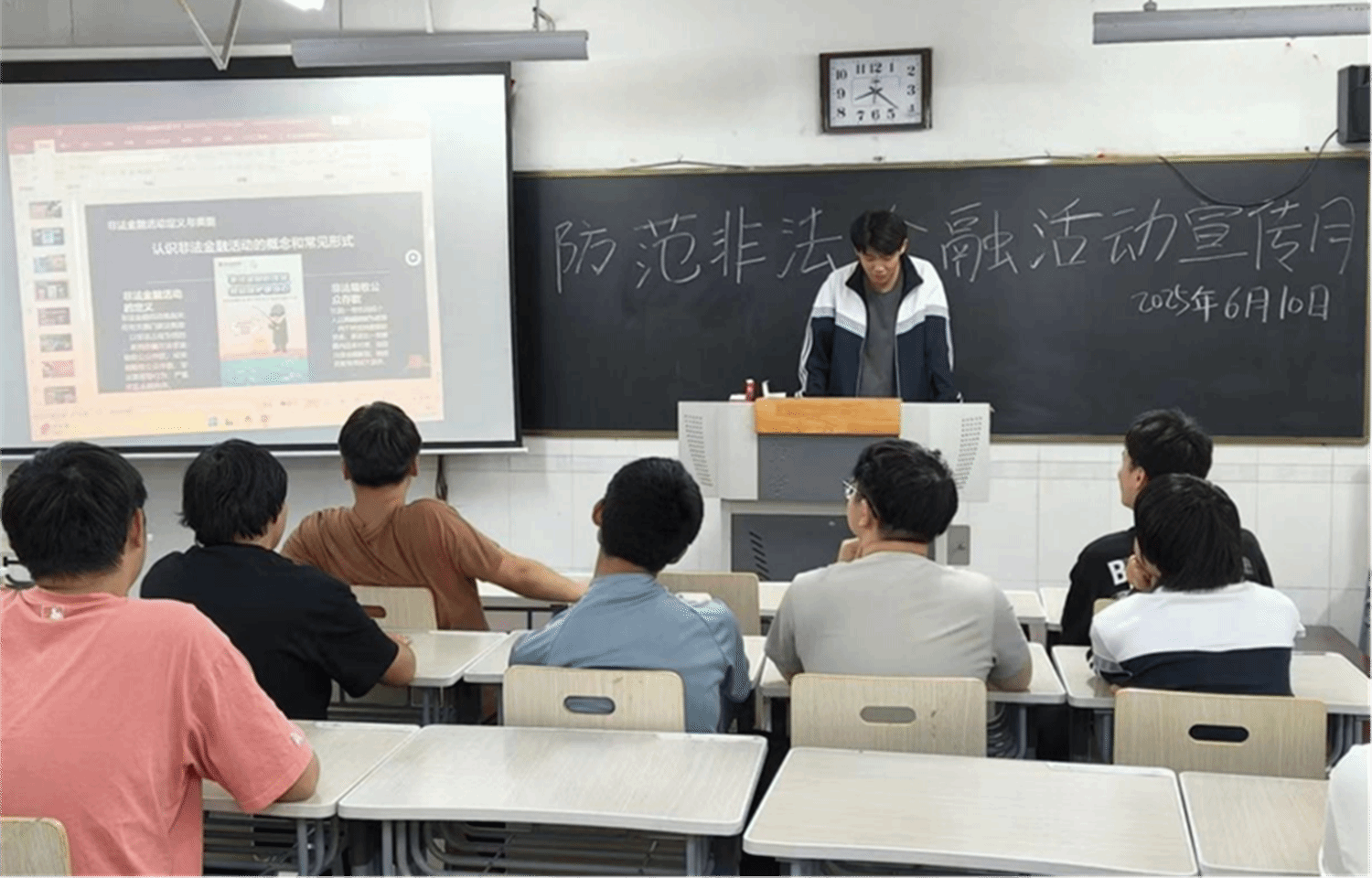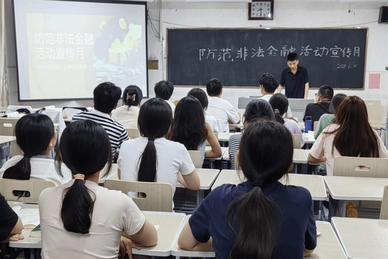 2025年6月是“防范非法金融活动宣传月”,今年宣传主题为“守住钱袋子·护好幸福家”。为进一步提升学生金融风险意识和防范能力,促进学生全面健康发展,6月10日,qy球友会,千亿球友会各班级在综合实验楼W楼开展防范非法金融专题宣讲活动。