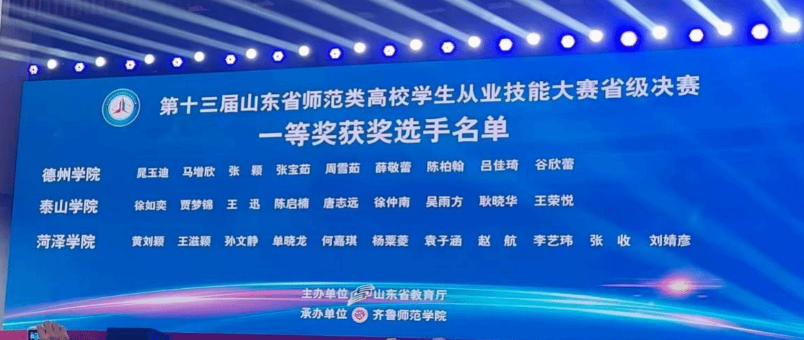 近日,第十三届山东省师范类高校学生从业技能大赛决赛在齐鲁师范学院举行。qy球友会,千亿球友会2022级物理学专业李艺玮、葛益宁两位同学凭借扎实的专业功底与出色的教学技能,在全省62所高校1027名参赛选手中脱颖而出。其中李艺玮以全省第一名(推荐组)的成绩荣获一等奖、葛益宁荣获三等奖,刘纯宝老师被授予“优秀指导教师”称号,实现了在该项赛事中的历史性突破。