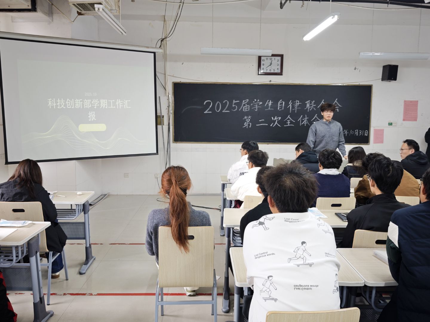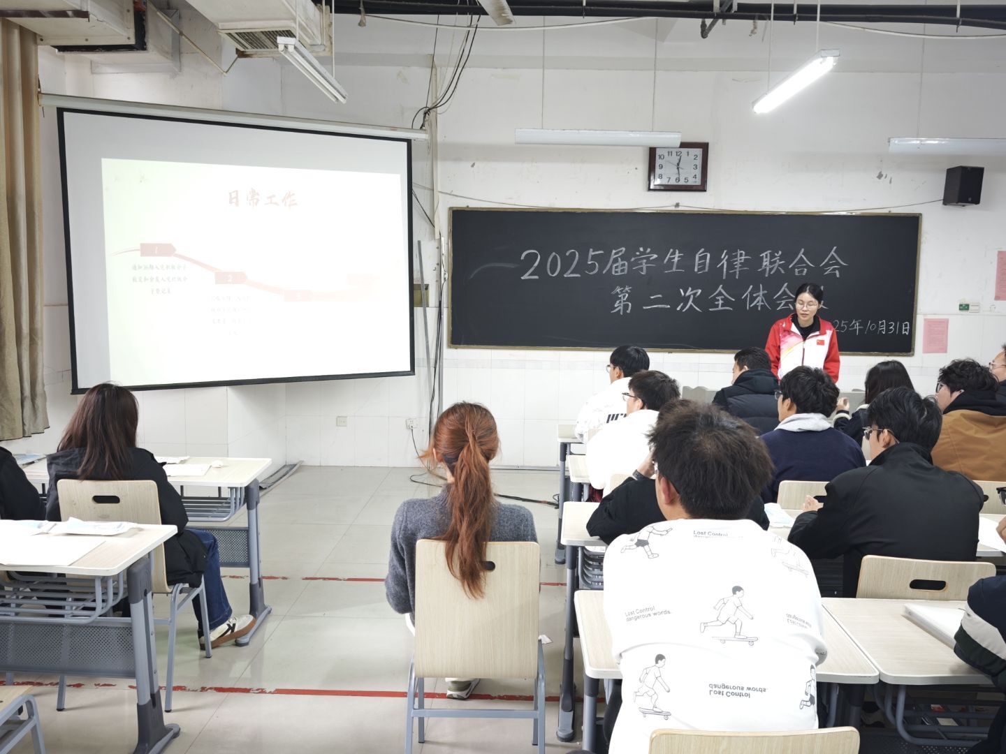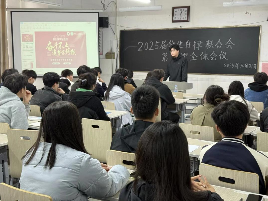为总结近期工作、提升服务质量,10月31日,qy球友会,千亿球友会在综合实验楼W502教室召开2025届学生自律联合会第二次全体会议。辅导员李晨出席此次会议,2025届学生自律联合会主席刘招锦主持会议,学生会全体成员参会。