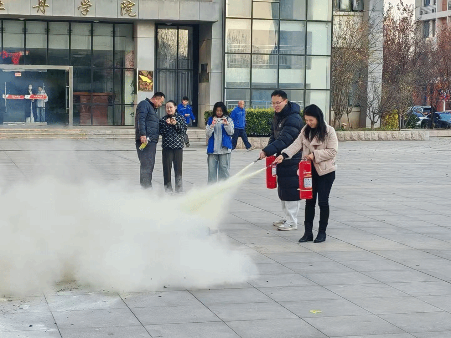 本次活动分为知识宣讲、演练逃生、灭火实操三大环节。在宣讲环节,负责人向同学们讲解火灾预防常识、火场逃生自救技巧以及消防器材正确使用方法,明晰校园内重点消防隐患区域。在演练环节,当火情警报响起,学生在老师引导下迅速用湿毛巾掩住口鼻,沿着指定疏散路线向楼前空旷的安全集结点转移。过程中,无拥挤、推搡现象,学生们严格遵守疏散纪律,全员在规定时间内安全疏散至集合点。在实操环节,消防员详细讲解灭火器分类及使用要点,演示“提、拔、握、压”四步操作法。现场学生踊跃参与,在老师的指导下逐一完成灭火实操,切实掌握了灭火器使用技能。