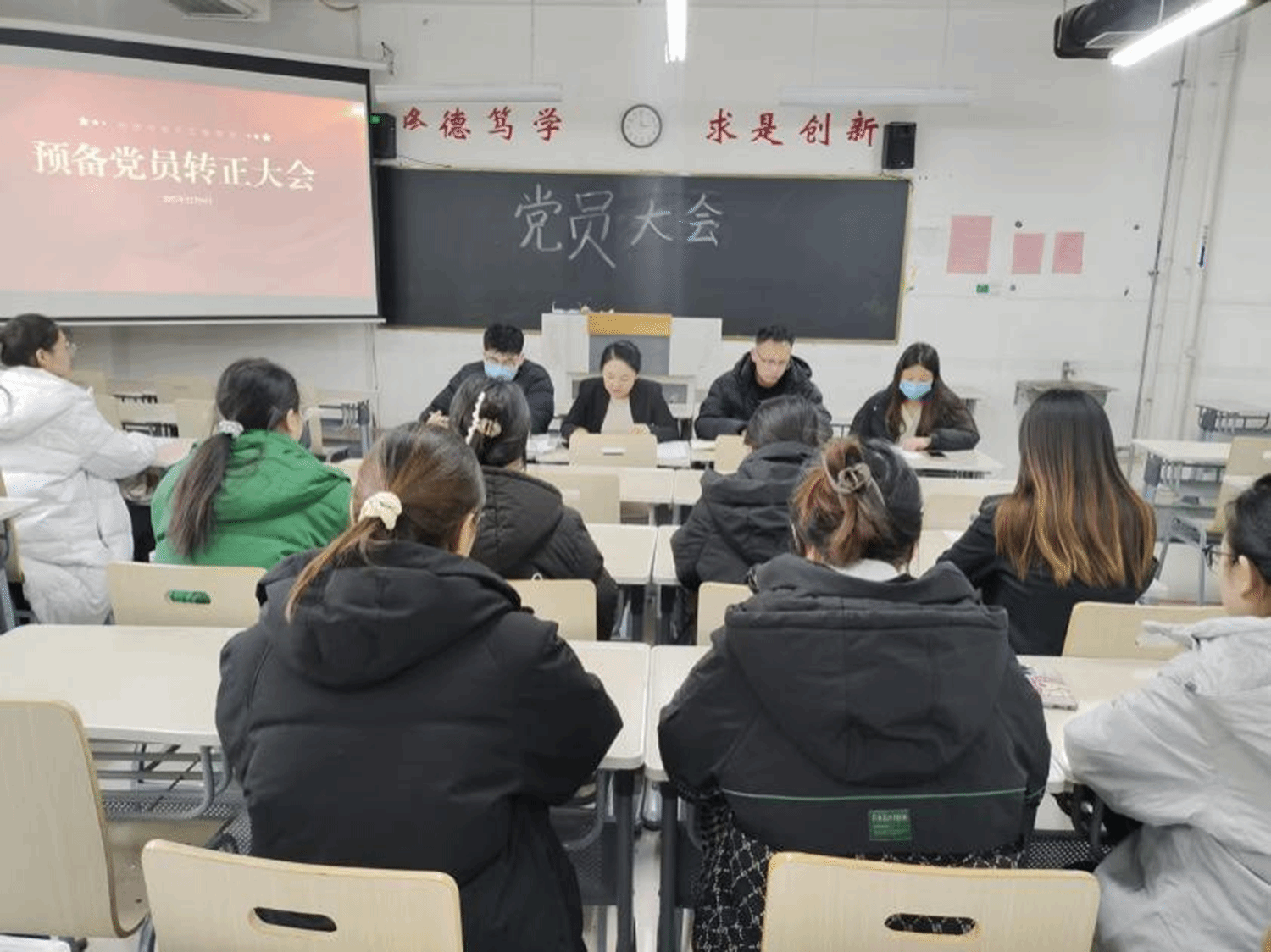会议严格遵循党员发展流程有序推进。在党员转正大会上,预备党员依次汇报了预备期间的思想成长与实践表现,大家紧扣“思想淬炼”与“行动落实”两条主线,系统梳理了在理论学习、支部活动参与及先锋作用发挥等方面的显著提升,并坦诚剖析了自身存在的不足。经支部大会充分讨论表决,一致同意上述同志按期转正,支部书记现场宣读了决议。转正党员们郑重承诺,将以此次转正为崭新起点,持续筑牢信仰之基,以更为纯粹坚定的信念锚定初心坐标,以更富主动性的担当作为践行使命诺言,时刻以高标准严格要求自己,切实发挥党员先锋模范作用,为学院发展和党的事业贡献力量。