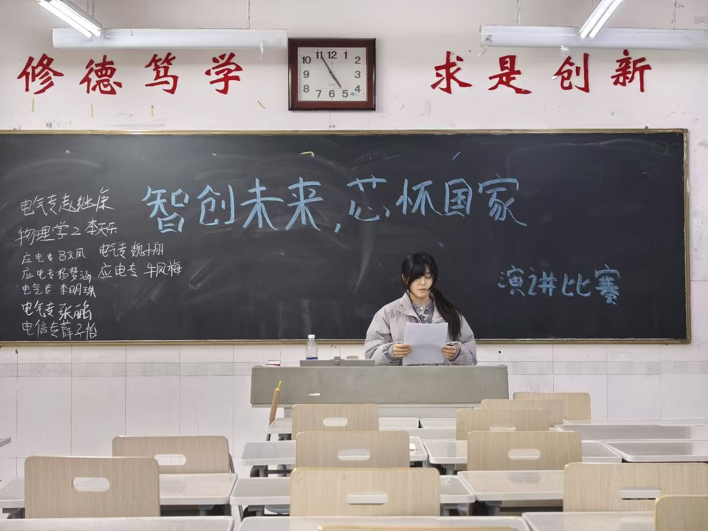 比赛伊始,主讲人紧扣电子信息领域前沿发展趋势,以“演讲为桥,科创为核”为核心理念,引导参赛学子结合专业所学与实践积淀,分享对电子技术的探索心得,抒发对家国使命的深刻体悟。参赛选手们依次登台,围绕物联网技术创新、芯片研发攻坚与新能源电路优化设计分享实践经验与心得体会。他们的分享既有对专业知识的深度拆解,也有对科创实践的生动复盘,更饱含着青年学子投身电子信息产业、助力核心技术自主可控的赤诚之心,赢得了现场阵阵掌声。